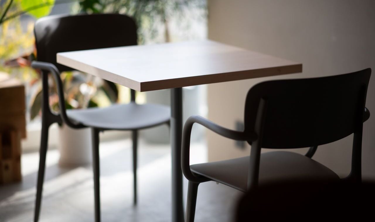 四角形が特徴のカフェテーブル。シンプルでモダンなデザインなので、どんなインテリアにも馴染みます。天板はナチュラルなシナ材を使用し、丁寧な加工で滑らかな触り心地を実現しました。